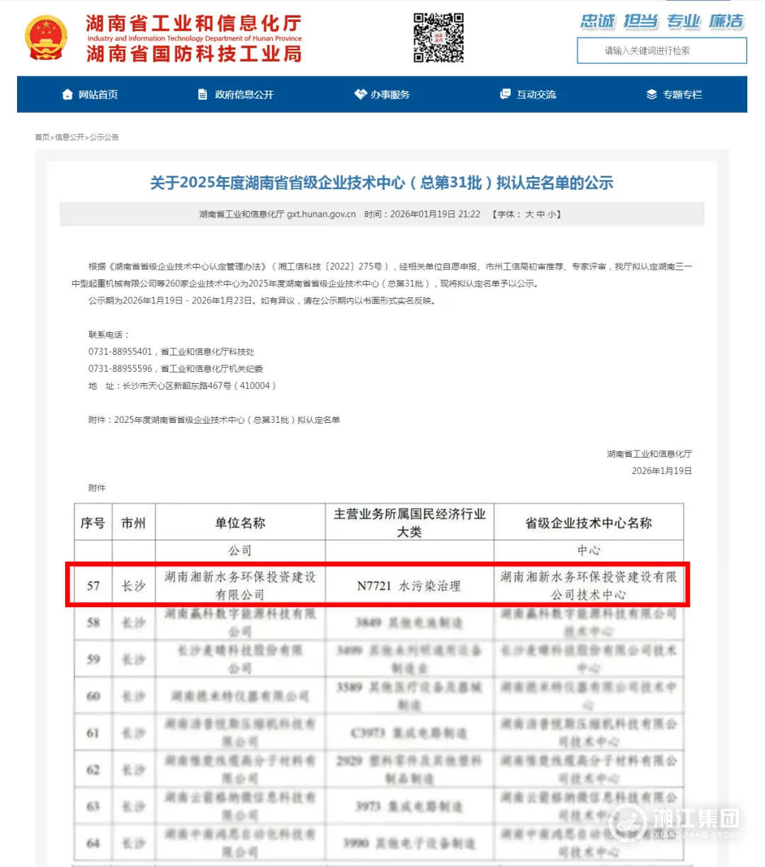 湘江集團(tuán)水務(wù)環(huán)保產(chǎn)業(yè)獲評(píng)2025年度省級(jí)企業(yè)技術(shù)中心